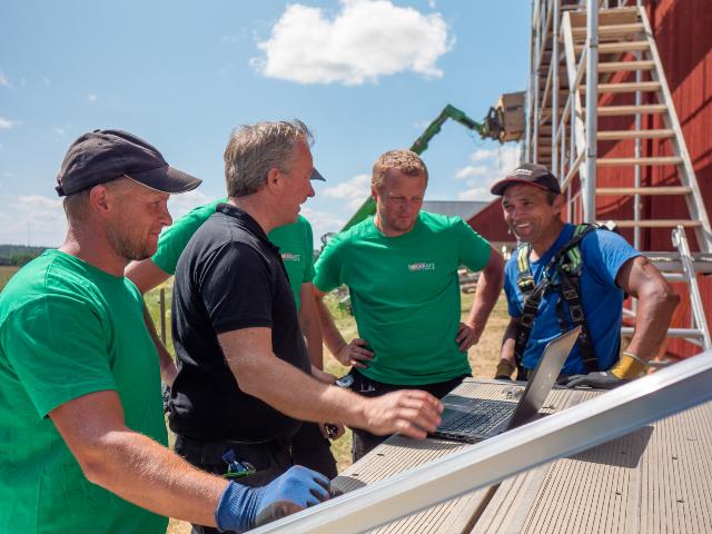 Ambitionen har alltid varit att använda komponenter med högsta möjliga kvalitet. Därför har vi bland annat valt europeiska varumärken i så stor utsträckning som möjligt där exempelvis schweiziska Meyer Burger och tyska Luxor Solar är tillverkare av solpanelerna och växelriktarna kommer från österrikiska Fronius.